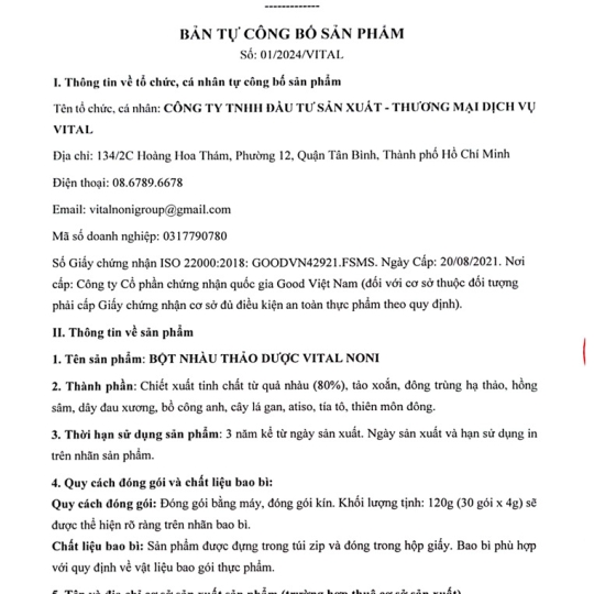 Bột Nhàu Thảo Dược VitalNoni là sản phẩm kết hợp giữa tinh chất quả nhàu và thảo dược chọn lọc, được phát triển theo hướng hỗ trợ chăm sóc sức khỏe từ bên trong, phù hợp với người muốn bồi bổ cơ thể, thanh lọc và duy trì thể trạng khỏe khoắn mỗi ngày.