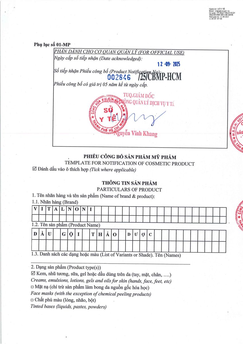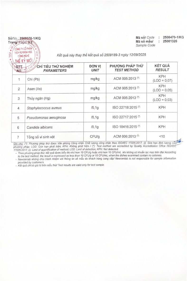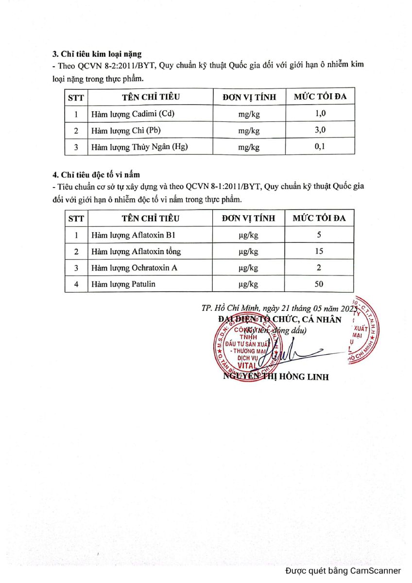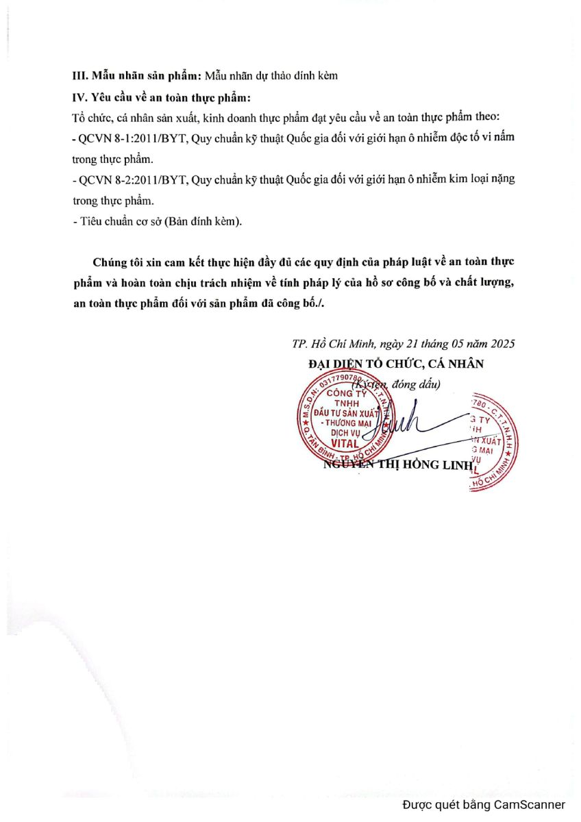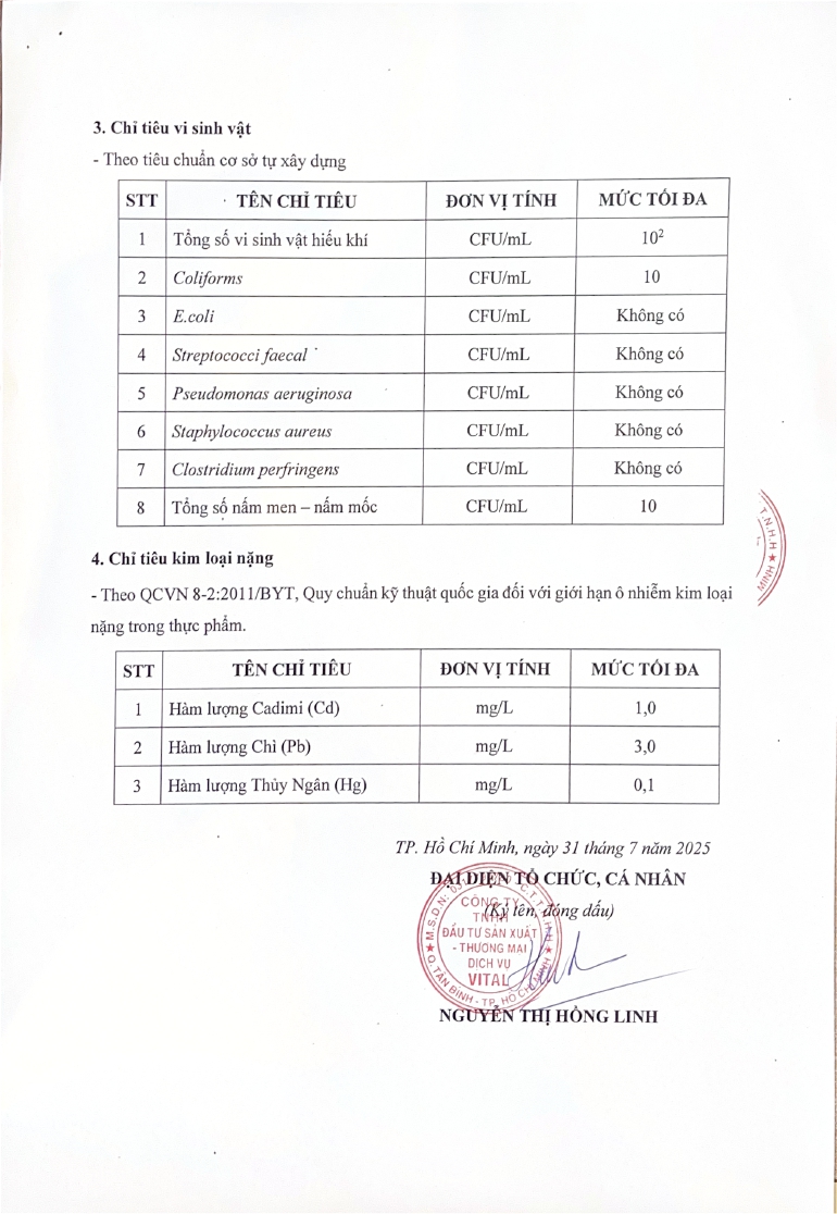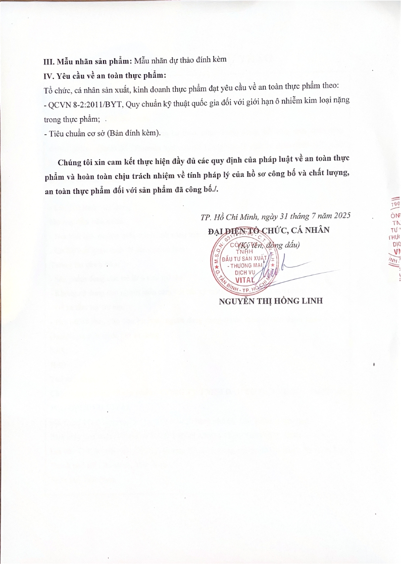 2. HỒ SƠ CÔNG BỐ VÀ KẾT QUẢ KIỂM NGHIỆM MỘT SỐ SẢN PHẨM CỦA VITALNONI: