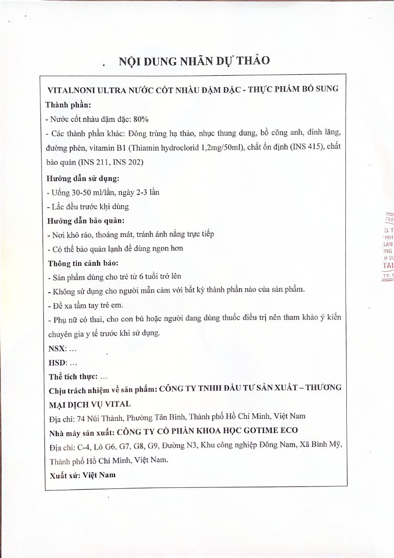 2.1. VITALNONI ULTRA NƯỚC CỐT NHÀU ĐẬM ĐẶC:
