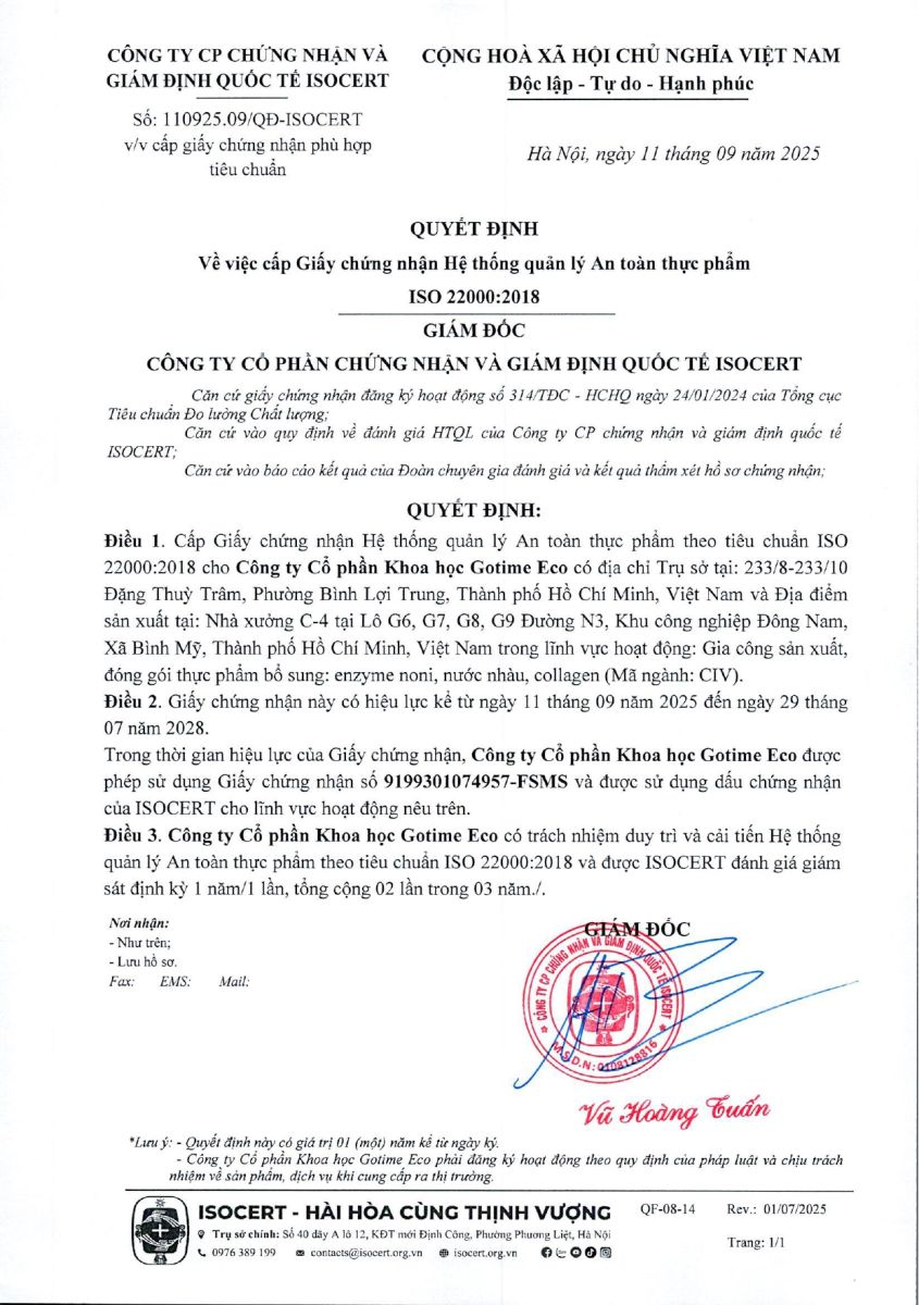 1. GIẤY CHỨNG NHẬN ISO 22000:2018: