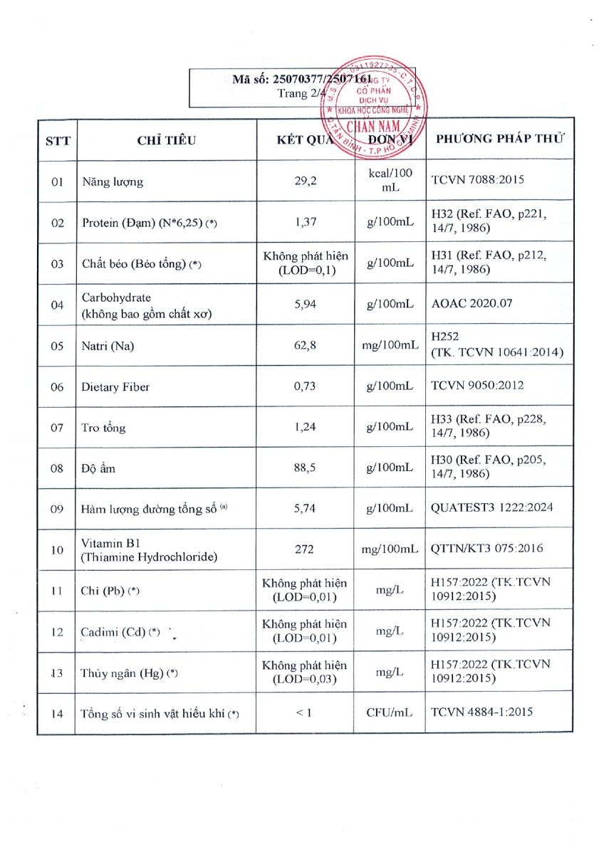 Kết quả thử nghiệm VITALNONI ENZYME 10PLUS - Trang 2