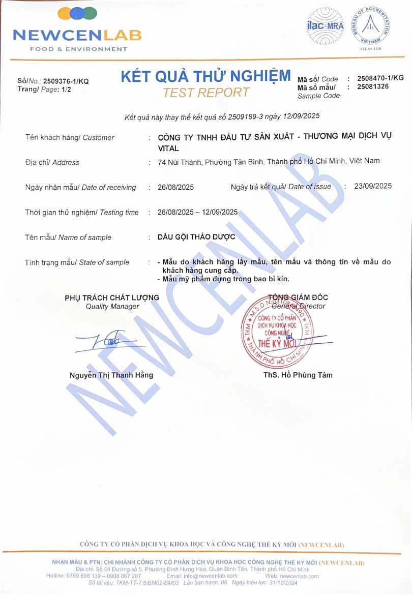 Kết quả thử nghiệm DẦU GỘI THẢO DƯỢC - Trang 1