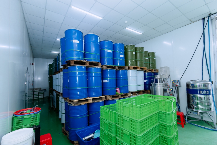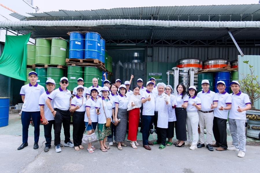Đoàn ghé thăm và chụp ảnh lưu niệm tại kho nguyên liệu Enzym