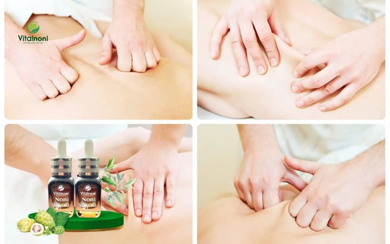 - Massage vùng lưng: Nếu có thể (hoặc nhờ người khác), dùng kỹ thuật vuốt dài dọc hai bên cột sống (tránh ấn trực tiếp vào cột sống) và xoa bóp tròn vùng thắt lưng.