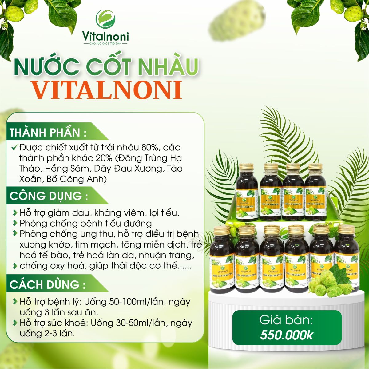 (Lưu ý: Sản phẩm của Vitalnoni không phải thuốc và không thay thế thuốc điều trị. Người đang điều trị bệnh cần hỏi ý kiến bác sĩ trước khi dùng).