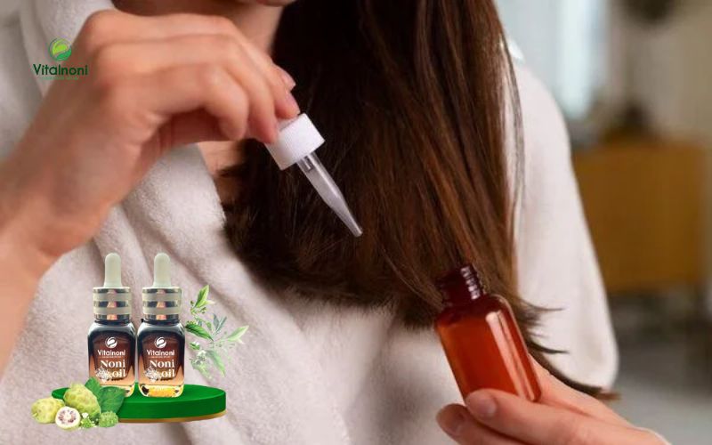 Tinh dầu Nhàu rất giàu chất chống oxy hóa mạnh mẽ và các axit béo thiết yếu. Nhờ các thành phần này, tinh dầu nhàu có khả năng nuôi dưỡng nang tóc hiệu quả, đồng thời giúp làm dịu da đầu đang trong tình trạng bị kích ứng hay ngứa ngáy khó chịu. Các đặc tính kháng viêm, kháng khuẩn tự nhiên của nhàu còn có thể hỗ trợ cải thiện tình trạng gàu.